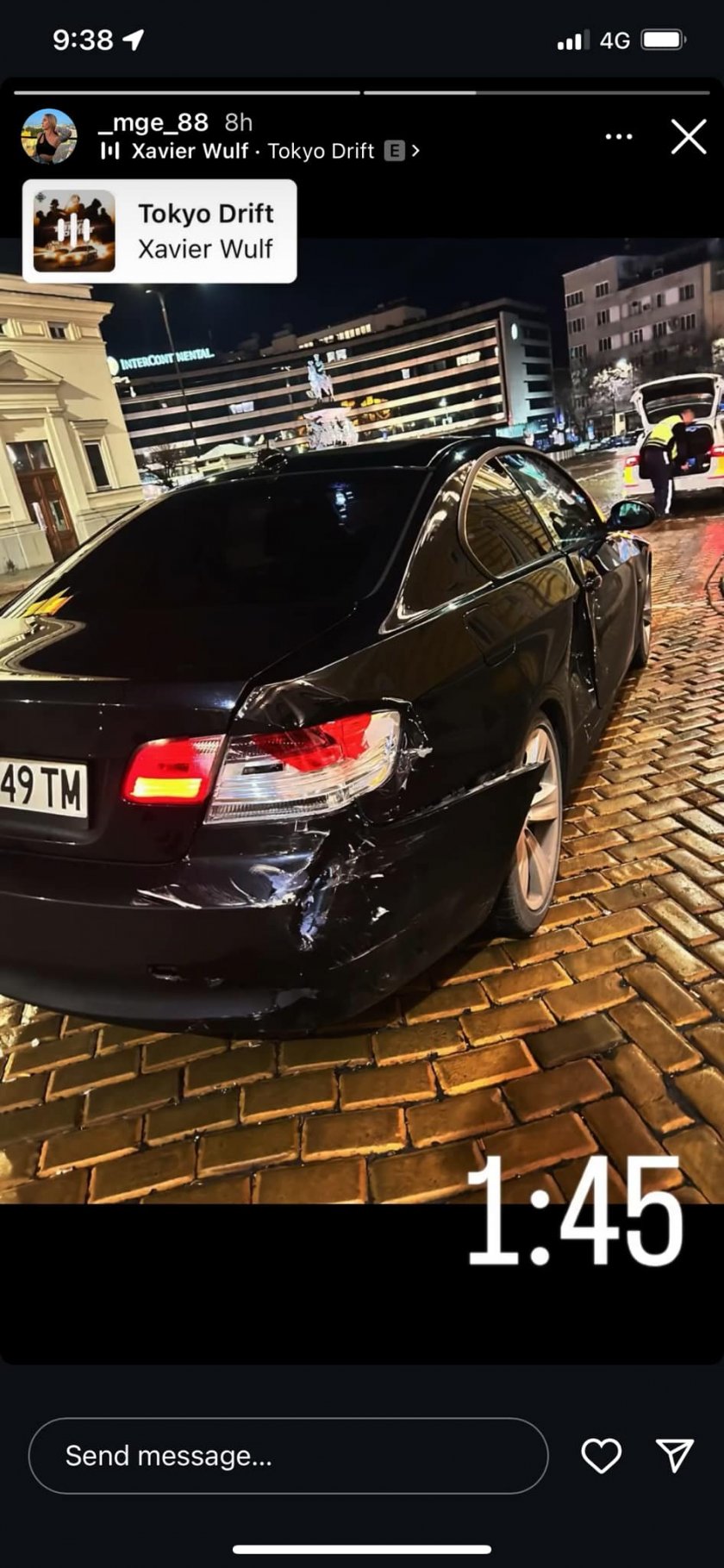 „ Добро утро към сладураната, която счете за уместно да се похвали със стори (бонус точки за тарикатство за служителите на реда откъм гърба и Tokyo Drift ), откакто размаза две паркирали коли. Ненужно е да влизаме в полемики за манталитета на елементарния българин, хванал Господ за шлифера сега, в който му бъде купено BMW от мама и тате. Просто пожелаваме сполучлива Нова година на момичето и тъй като всичко се връща в този живот, сети се за това, когато теб ударят някъде и го схванеш, прибирайки се в студа след нощна промяна! “- написа Мия Колева.
