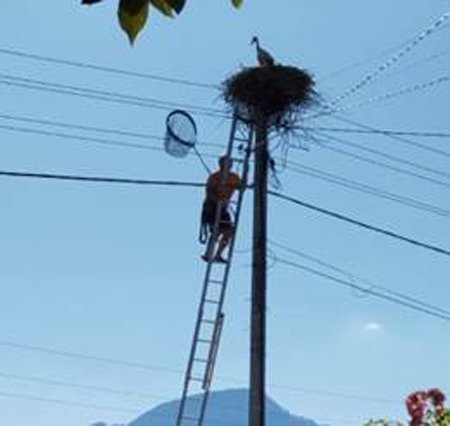Двойка бели щъркели, които са защитен тип, издигнали тази година гнездо върху бетонен дирек с жици, обвързван към електроразпределителната мрежа. Излюпили се две щъркелчета с към месец по-късно от другите птичета в региона. Според локалните поданици в последните 4-5 дни гнездото не било посещавано от възрастен щъркел, което означавало, че дребните са изоставени от родителите си и бедстват.
