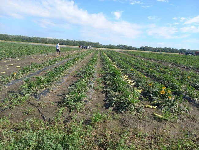 " Хората са се трудили доста и цялата им годишна продукция е унищожена ", установи Петков, откакто огледа провалите. Той и земеделският министър надянаха ботуши и влязоха в нивите с тиквички. Производители им се жалваха, че това се случва за трети път.