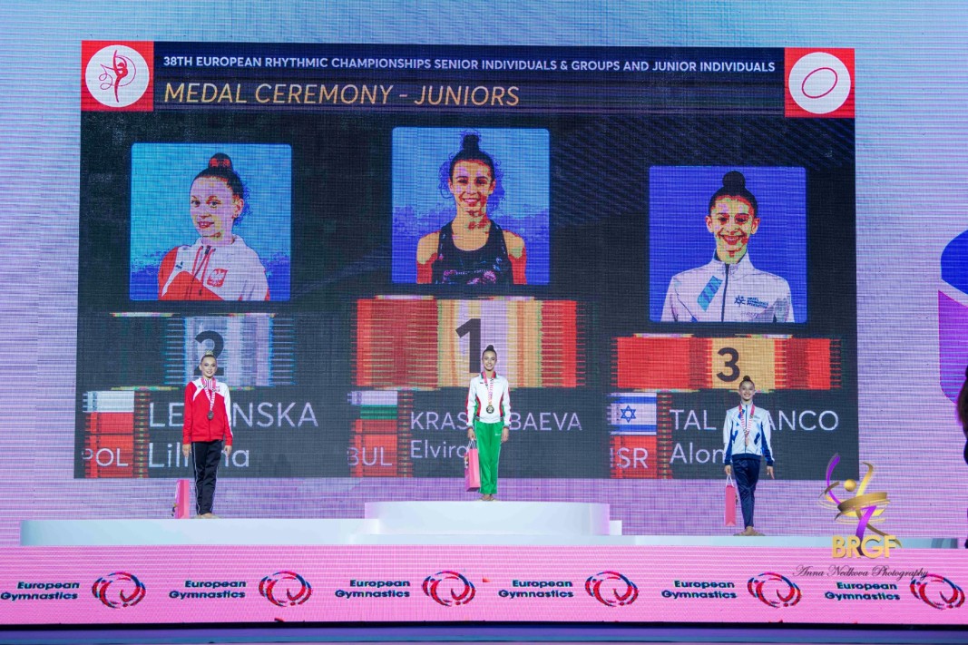 „ Много е хубаво да си на първото ходило на почетната стълбичка. Много. Аз не бях обезпокоена, тъй като бях сигурна в това, което върша. Бях сигурна, че ще си изиграя съчетанията, тъй като доста съм работила и всичко си мога “, това показа след награждаването европейската шампионка с обръч Елвира Краснобаева. Състезателката на варненския клуб „ Грация “ завоюва сребърно оценки във финала с топка и бронз в отборната конкуренция дружно с Дара Стоянова.
