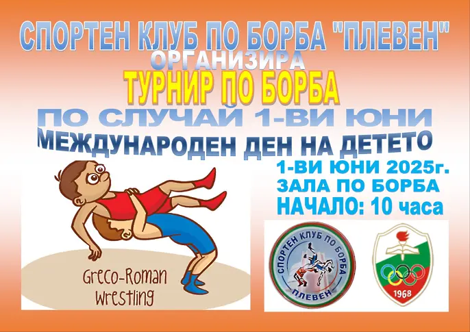 Спортен клуб по битка „ Плевен “ провежда районен шампионат по случай Деня на детето - 1 юни, за състезатели до 13-годишна възраст. Надпреварата ще се организира в залата по битка на ул. „ Самуил “ в неделния ден от 10.00 часа. Освен домакините, ще вземат участие и тимове от Ловеч, Тетевен, Белене, Кирчево, Селановци и Оряхово.