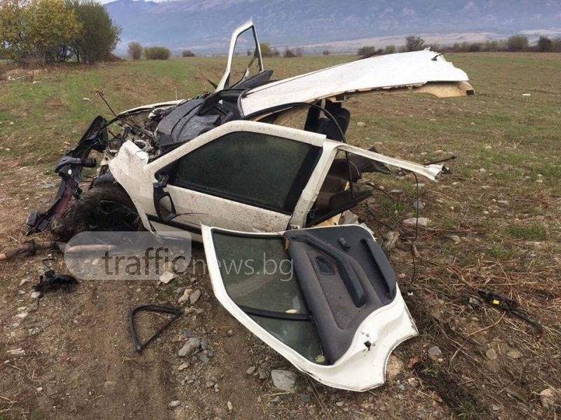 Тежък пътен инцидент - кола е разполовена и смазана на пътя