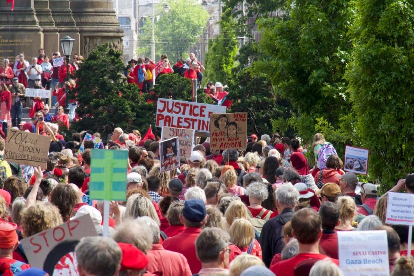 Многохиляден митинг против геноцида в Газа се организира в Нидерландия, съобщава Ал-джазира. В демонстрацията участваха десетки хиляди души. Облечени в алено, протестиращите маршируваха през Хага, с цел да призоват държавно управление да направи повече, с цел да спре израелската атака в Газа.