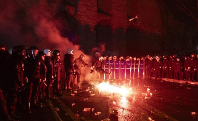 Полицията за битка с безредиците в Измир се опита да разпръсне протестиращите с водно оръдие и сълзотворен газ.