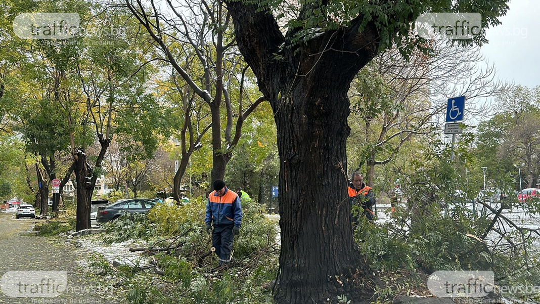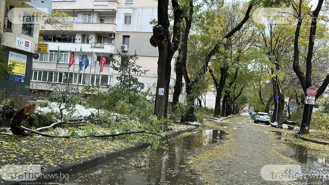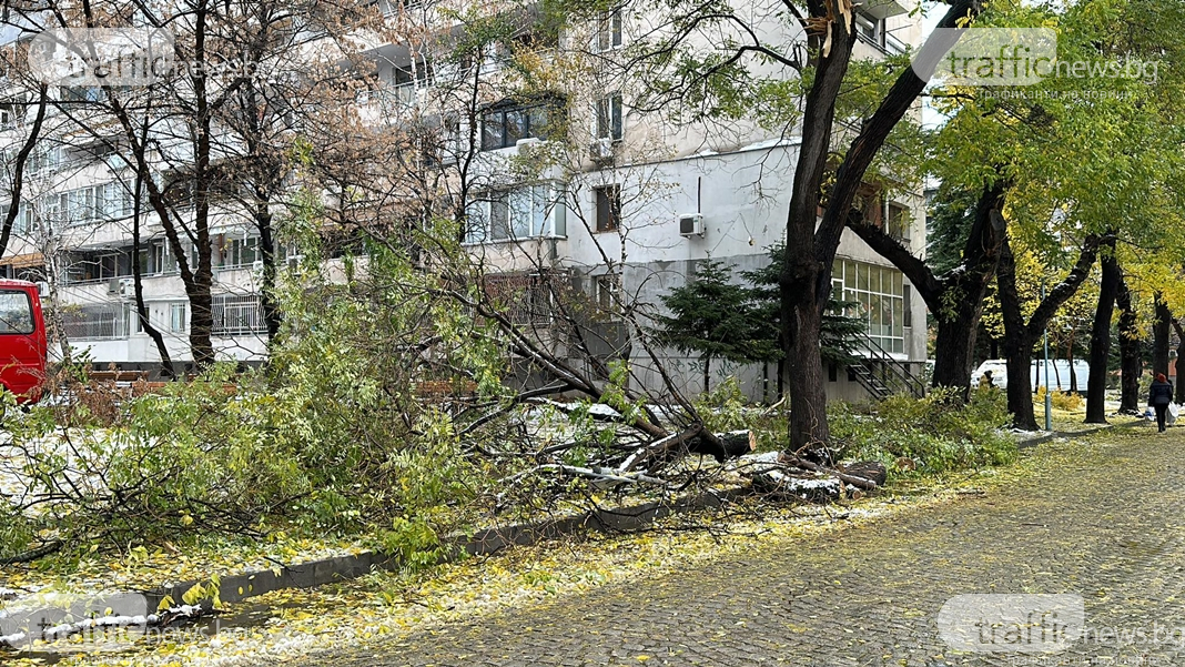 Счупени дървета и клони блокираха централна пловдивска улица