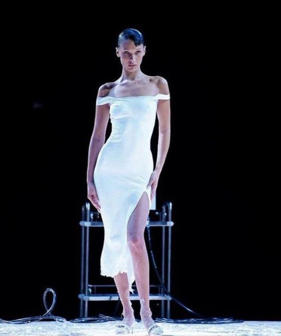 Паметна визия: Бела Хадид в рокля от втечнен памук