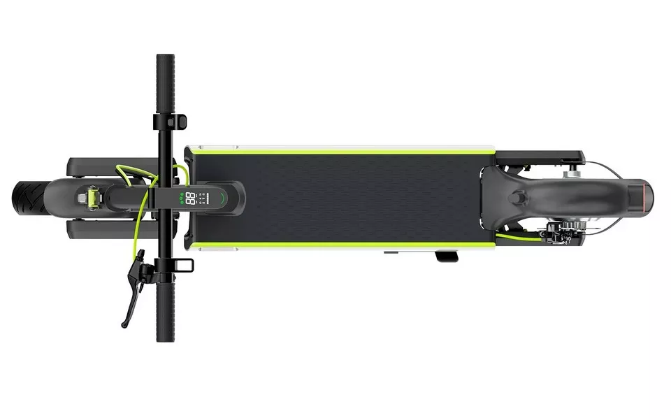 е оборудван с необятни 10-инчови пневматични гуми, покрити с крос-кънтри шарка на протектора. Те обезпечават по-добро сцепление и резистентност на убождане, издръжливи са и се приспособяват към разнообразни пътни настилки за безпрепятствено каране. Предният LED фар и задната светлина вършат безвредно карането на мрачно.