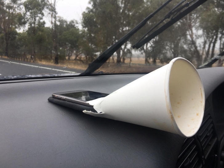 2. Когато представителят в колата се повреди, работа прави и елементарната картонена чаша от кафе.