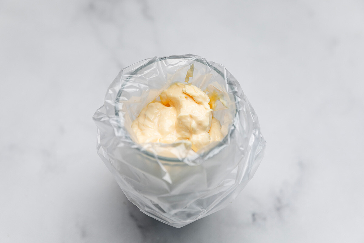 За да приготвите подобаващата доза майонеза, сложете я в найлонов плик, с цел да я разпределите по-лесно.
