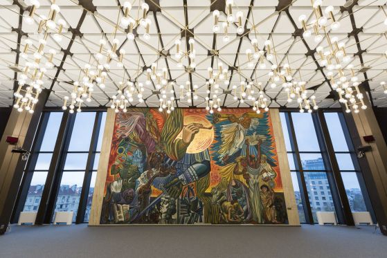 Екран за Председателството закри стенопис в НДК