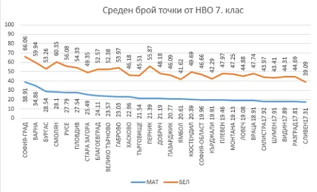 По райони най-добре на изпита по БЕЛ се показват седмокласниците от София-град, Смолян и Варна, а най-ниски са резултатите в Сливен, Ямбол и Кърджали.