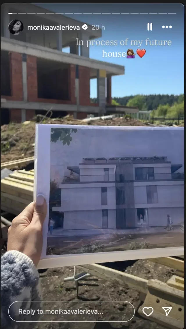 Плеймейтката показа с почитателите си в обществените мрежи фрагменти от градежа на впечатляваща триетажна резиденция, намираща се отвън рамките на столицата. На фотографията Моника държи в ръка плана на бъдещия си дом – архитектурен чертеж, който разкрива съвременна визия и сериозен мащаб.