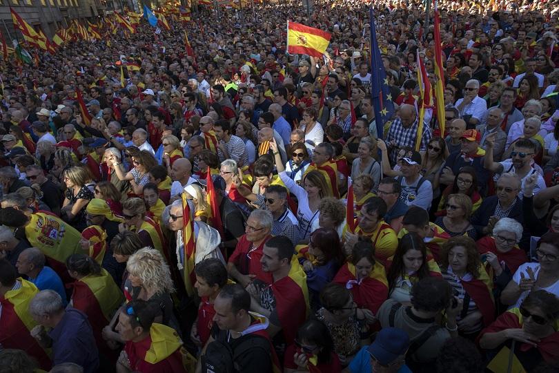 Днес Каталуния беше оцветена в огнените цветове на испанското знаме. По улиците на Барселона в неделя имаше последователи на целостта на Испания, само че през последните дни видяхме и другата страна на политическата рецесия. Хората скандираха " Каталуния е цяла! ", " Испания е за всички ". Този протест беше доста по-многоброен, откогато бе оповестена едностранно независимостта. Хората приветстваха с аплодисменти всеки хеликоптер, който минеше над главите им. Те се борят против невижданата офанзива против демокрацията, против опита за прелом.