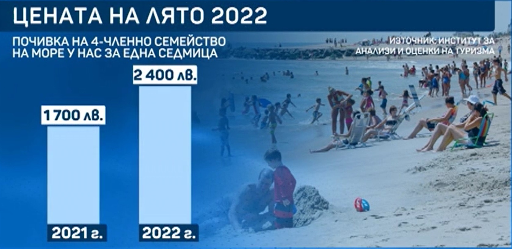 Ако предходната година междинната цена за едноседмична отмора за четири-членно семейство на родното Черноморие е коствала към 1700 лв., през лято 2022 година цената към този момент доближава 2400 лв..