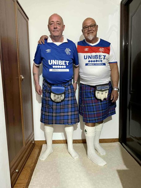 Привърженици на Спартак и Рейнджърс в шотландски носии