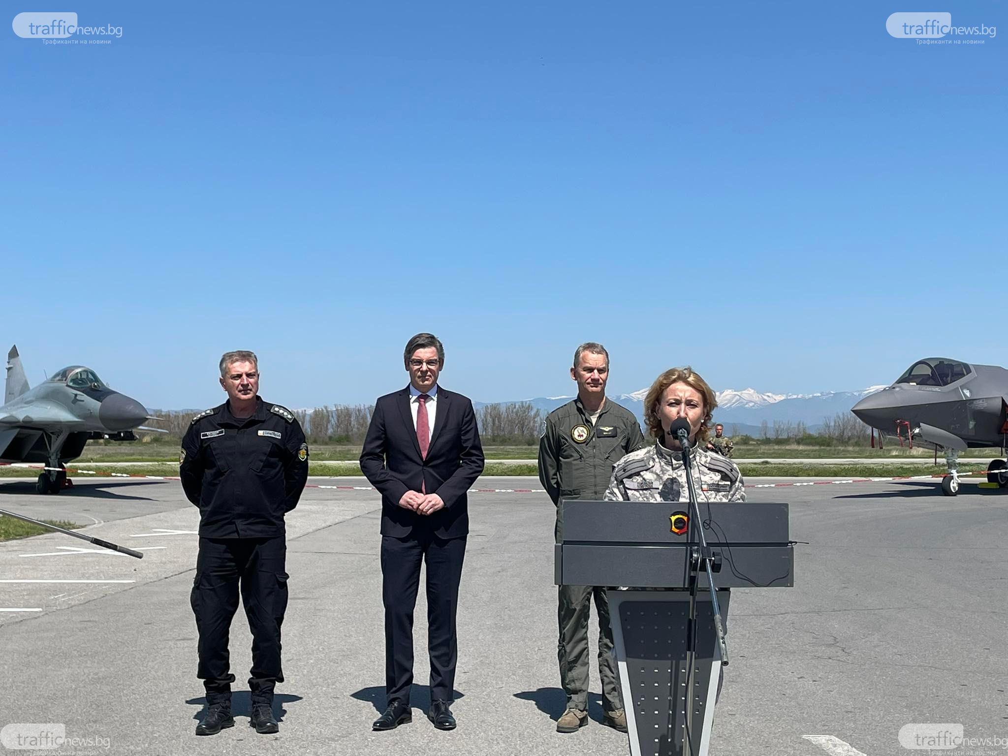 На място участваха зам.-министърът на защитата Йордан Божилов и началникът на защитата адмирал Емил Ефтимов, дружно с високопоставени посетители за взаимното осъществяване на задачата Air Policing от българските Военновъздушни сили и Военновъздушни сили на Кралство Нидерландия. Там бяха още изключителният и пълномощен дипломат на Кралство Нидерландия в България Н. Пр. Симон ван дер Бург и командирът на Военновъздушните сили на Кралство Нидерландия генерал-лейтенант Денис Лаут.