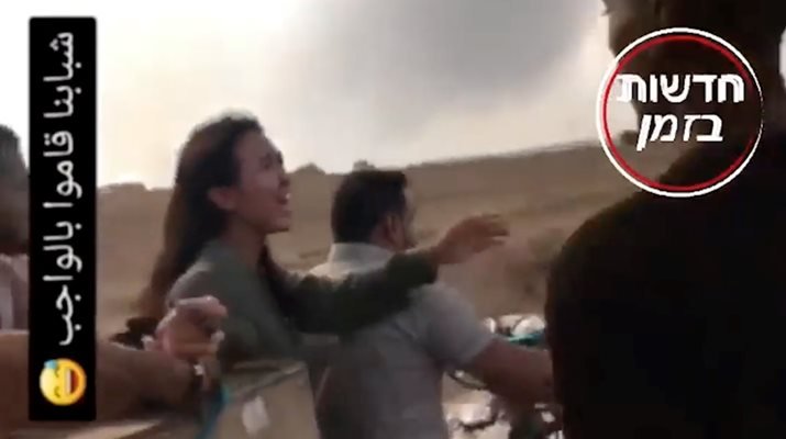 В обособен видеозапис, оповестен от Министерството на външните работи на Израел, се вижда по какъв начин червенокоса жена е измъкната от джип, цялостен с терористи, и я влачат за косата. Нейният панталон също бил оцапан с кръв, оповестява The times of Israel.