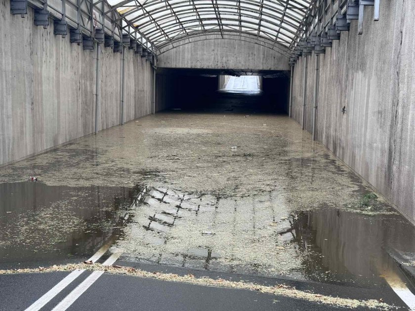 Силният вятър е счупил витрината на магазин в центъра на морския град. А подземната улица, която минават под централния площад, е наводнена и затворена за придвижване.