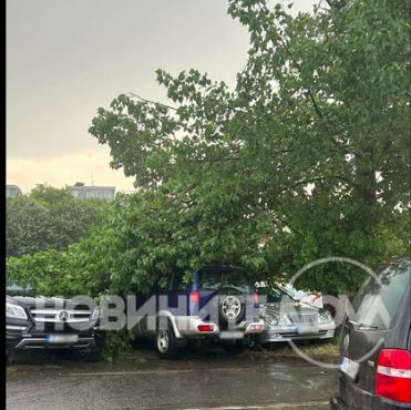 Съборени са избавителни вишки и чадъри. Обърнати са и шезлонги. Мълния е разцепила дърво, чиито клони са паднали върху паркирани коли.