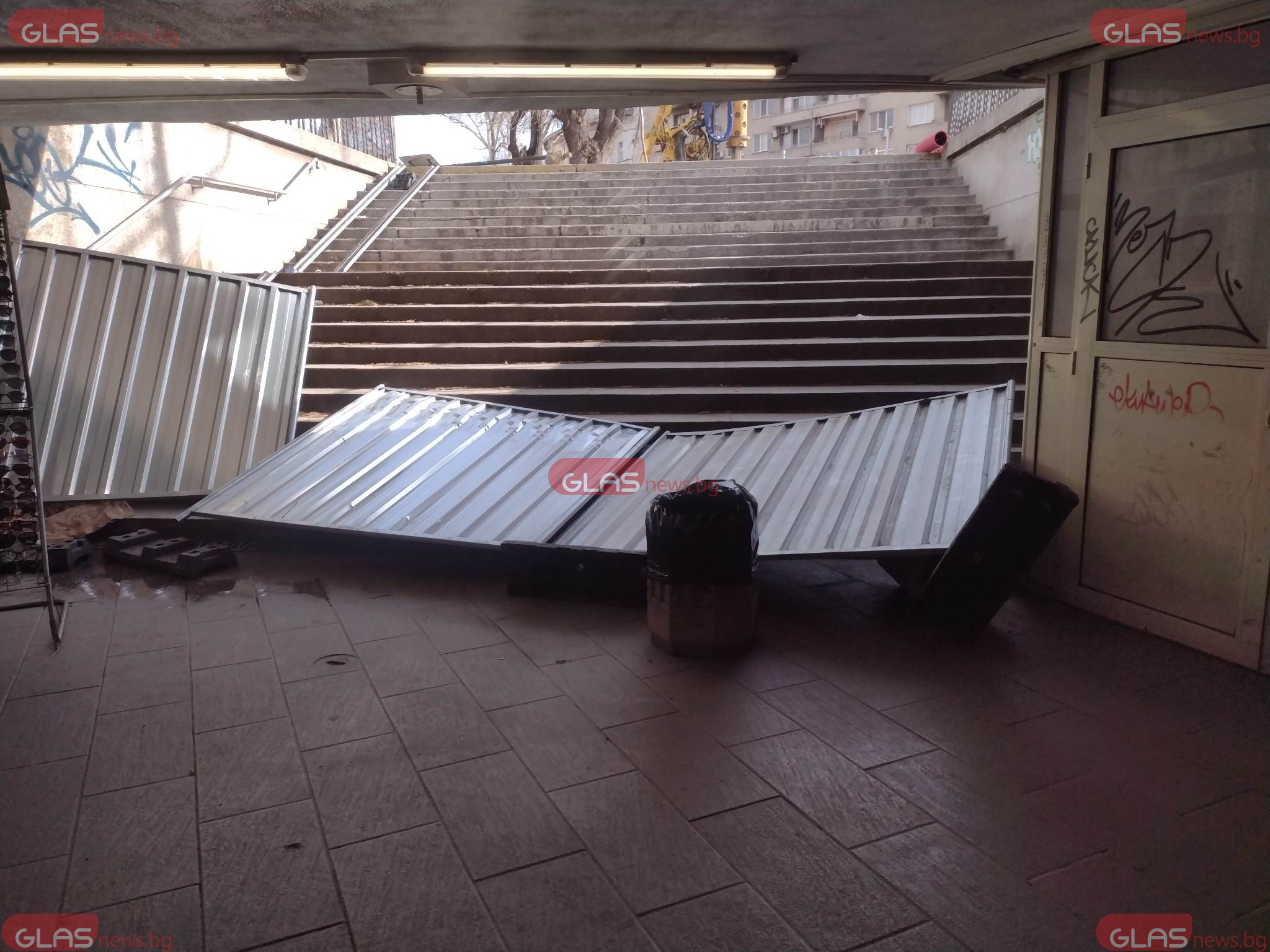 Мощният вятър в Пловдив продължава да нанася вреди на разнообразни точки в града. Днес знаците на Централна гара, обозначаващи ремонтната активност и нововъведените правила за придвижване в региона на пробива - те пак изпопадаха. На този декор не престават да валят сигналите за паднали дървета и счупени клони.
