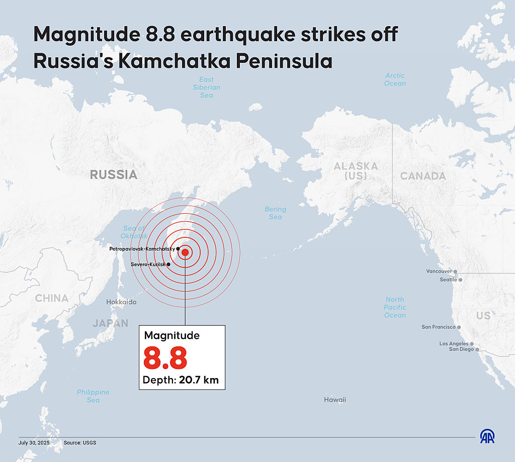 Мощно земетресение от 8,8 по Рихтер раздруса Русия и Япония, като докара до изключителни предизвестия за заплаха от цунами по двете страни на Тихоокеанското крайбрежие.