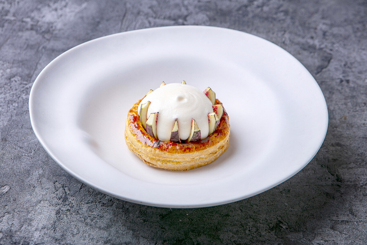 Необходими артикули (за 1 порция): Бутер тесто с квас – 1 листБрашно – 3 супени лъжициСладко от смокини – 30 гСмокини – 1 бр.Ряженка – 50 млОрехи – 5 гЯйце – 1 бр.Лавандула, малини на прахуляк – 5 гр. (по избор)Начин на подготвяне: