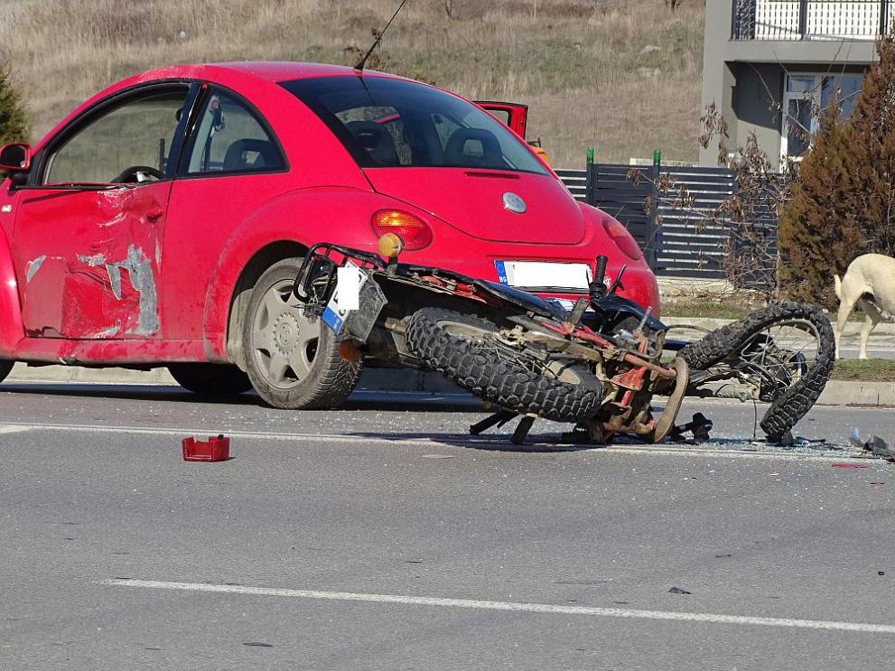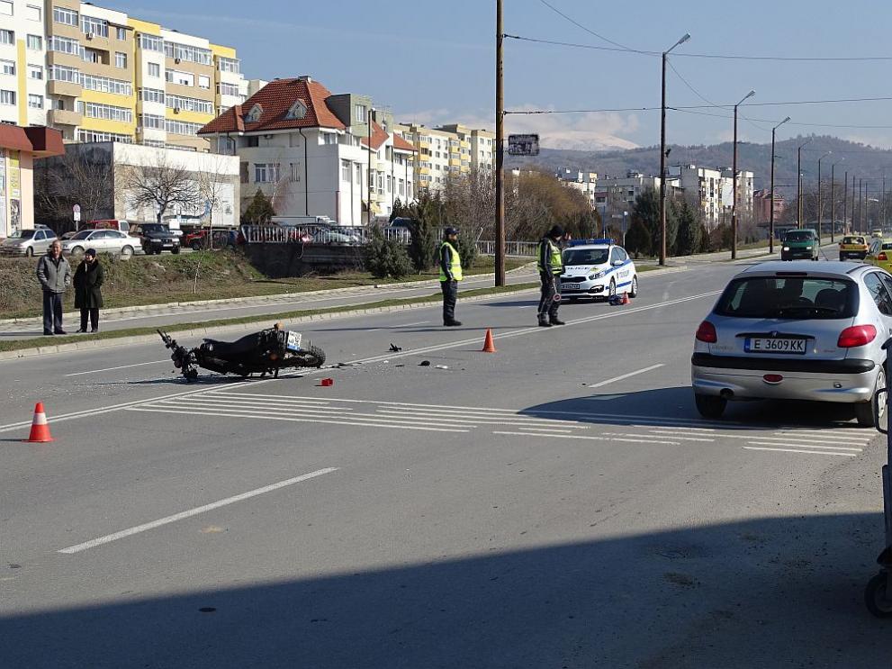 Непълнолетен моторист се блъсна в кола в Благоевград, трима пострадаха