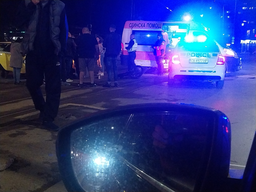 Моторист е бил блъснат на кръстовището сред булевардите „ Вардар “ и „ Александър Стамболийски “ в София. Все още няма публична информация за положението му.