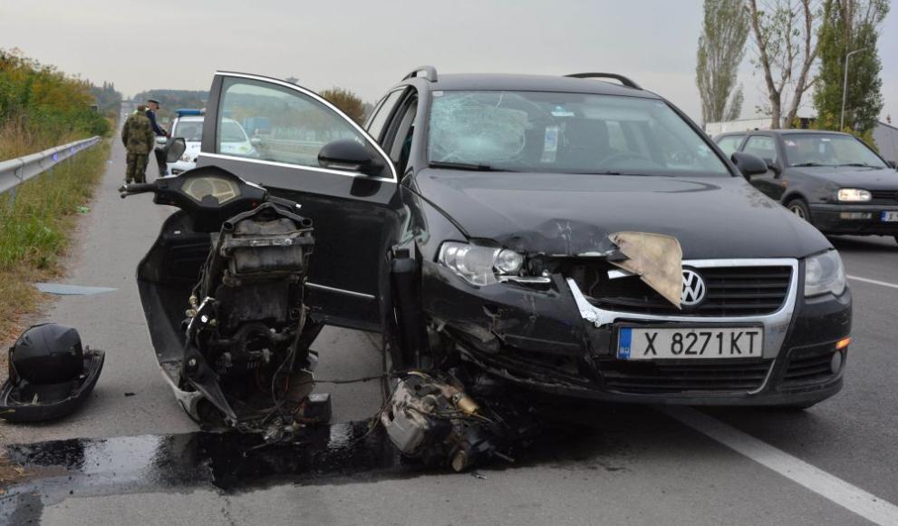 Причините за случая се обясняват, като по първични данни колата е застигнала мотора и го е блъснал.