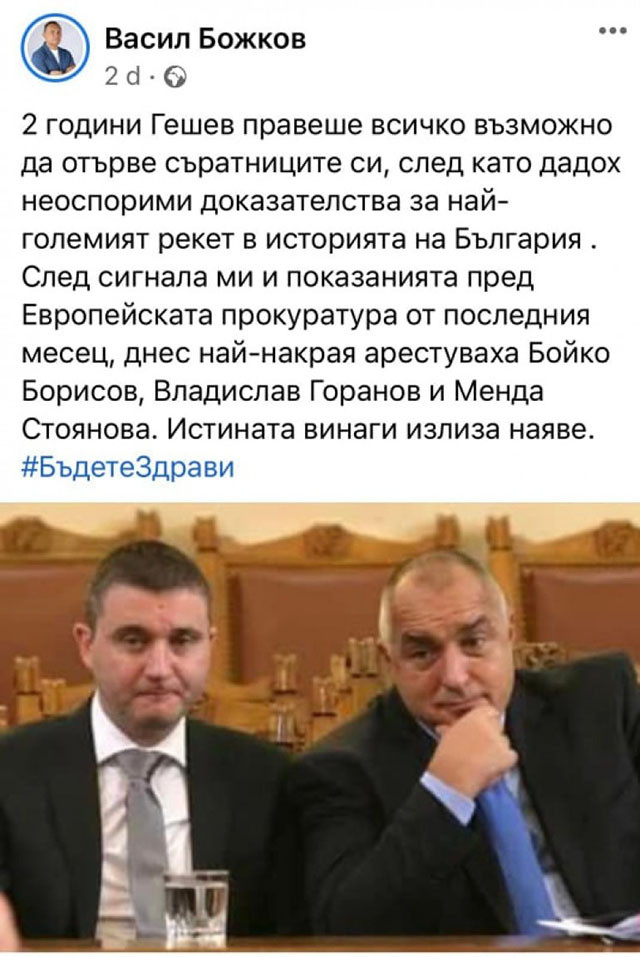 На среднощната конференция в петък, която трябваше да замаже някак си гафа, Бойко Рашков съобщи, че на Божков, нищо че е глобен по Закона „ Магнитски “ и с повдигнати 19 обвинявания, в това число и за поръчкови убийства, може да се разчита като благонадежден очевидец. Оказа се, че държавното управление не е на четворната коалиция, а на Васил Божков, който дава инструкции на премиера Кирил Петков и вътрешния министър Бойко Рашков в осъществяване на задачата си да си отмъсти на „ Влади “ и „ Бойко “.