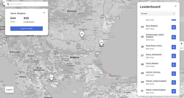 Това ще се случи в случай че зарядните станции получат задоволително гласове в новия уебсайт на Tesla, който разрешава на консуматори от целия свят да гласоподават за това, къде тъкмо желаят да видят идващите станции на Tesla. Разбира се, първата ни работа бе да проверим къде се намира България в този лист и изненадващо, страната ни не е толкоз обратно все още на писане на този текст.