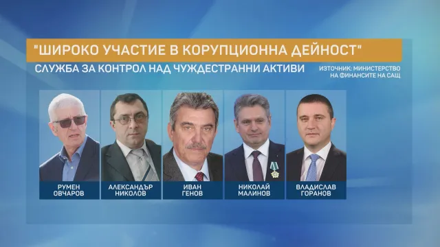 Към санкционния лист „ Магнитски “ бяха добавени имената на някогашния министър на енергетиката Румен Овчаров, някогашните шефове на АЕЦ „ Козлодуй “ Александър Николов и Иван Генов, ръководителят на НД „ Русофоли “ Николай Малинов и някогашният финансов министър в кабинетите на ГЕРБ Владислав Горанов.