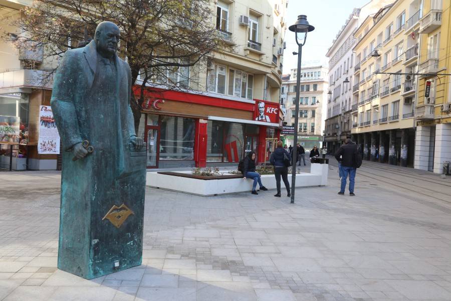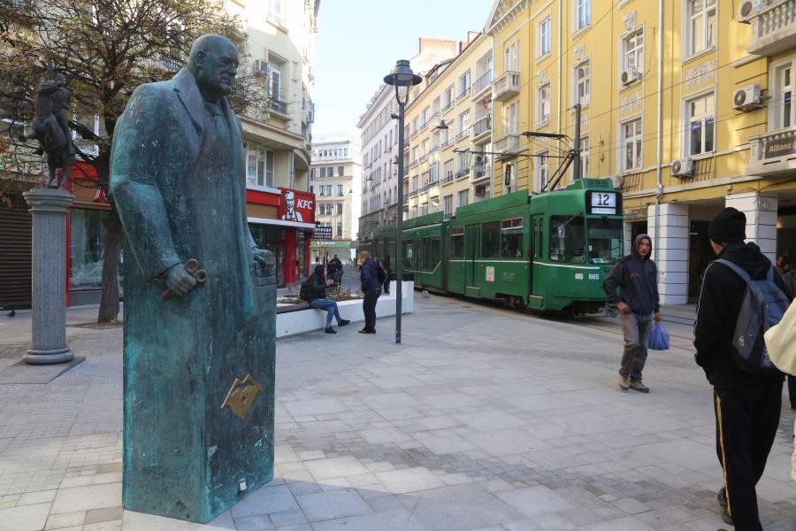 На 1 април София осъмна с голям монумент на премиера Бойко Борисов на столичния площад „ Гарибалди “.