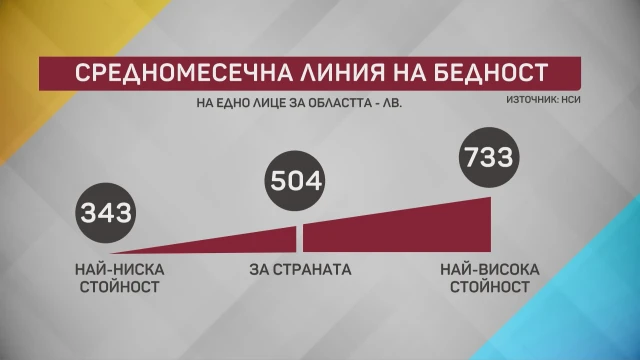 Една трета от българите живеят към линията на бедността. През 2021 година тя е 504. Около 16 лева на ден за един човек от домакинство. Под този предел с към 11лв. се оказва всеки пети българин - това демонстрират данните от Националния статистически институт.