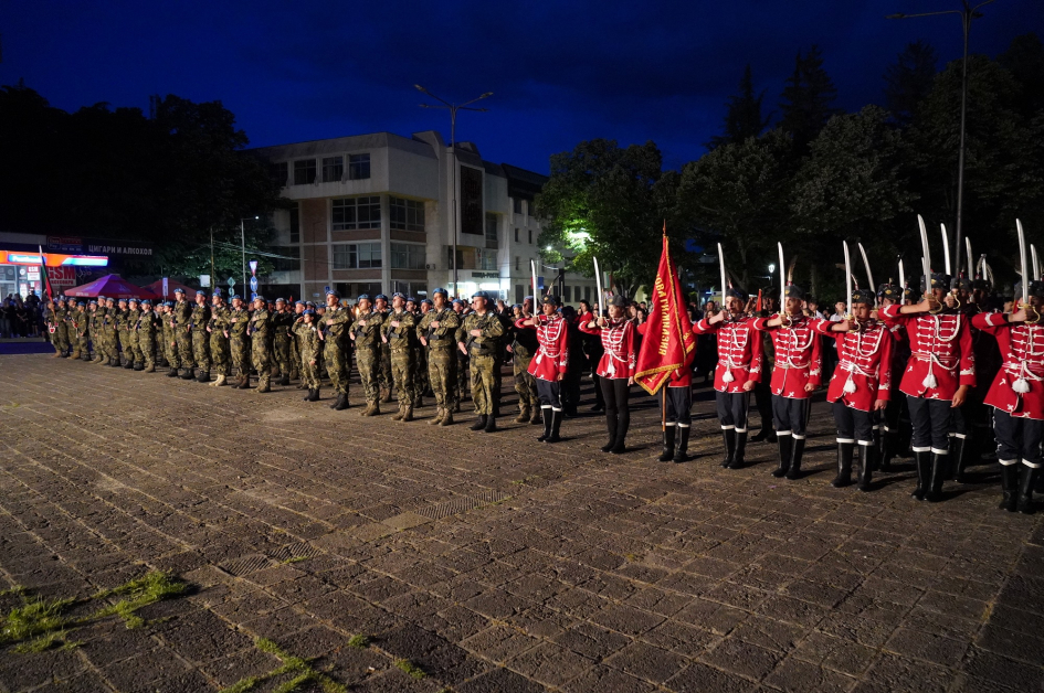 След вечерната инспекция по роти и рапортите за славните победи на Българската войска военнослужещите от Специалните сили и дребните гвардейци извършиха националния химн и бе отдадена почит пред героизма на българските бойци.