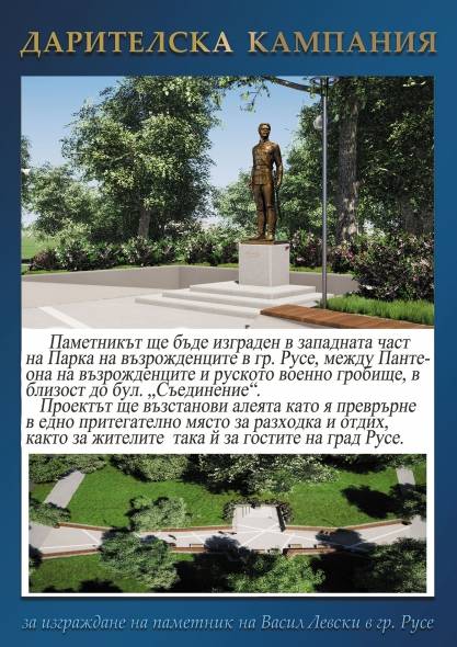 На 11.09.2020 година (петък) от 17.00 часа в Парка на възрожденците в гр. Русе публично ще бъде открит паметникът на Апостола на свободата Васил Левски. От 18:30 часа в зала „ Европа “ на Доходно здание ще бъдат връчени свидетелствата за подаяние и статуетките на донорите.