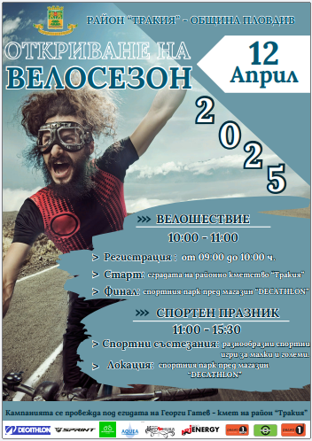 На 12 април регион „ Тракия “ ще даде формален старт на велосезона в Пловдив с велошествие и състезателен празник, изпълнен с игри и изненади. Събитието има за цел да насърчи жителите на града да изберат велосипеда като средство за напредване – здравословна, екологична и съвременна опция в градската среда.