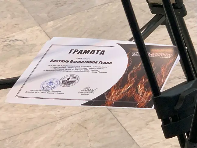 След малко показване, всеки от участниците в изложбата " Светлописи " получи и грамота. Представянето беше направено от куратора на изложбата и участник в нея - Лъчеезар Костов.