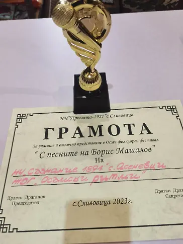 Бяхме наградени със статуетка и икона от ръководителя на читалището в Сливовица Драган Драганов, който остана доста впечатлен от нашите осъществявания и персонално на сцената изрече своята признателност, хвалба и насочи покана за последващи фестивали и концерти.