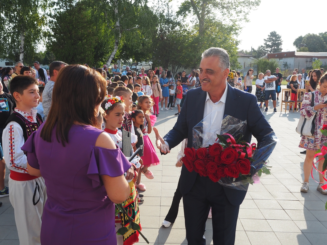 Кметът на Общината сервира цветя и приветствен адрес за първия образователен ден на учителите и подари образователни принадлежности на първокласниците.