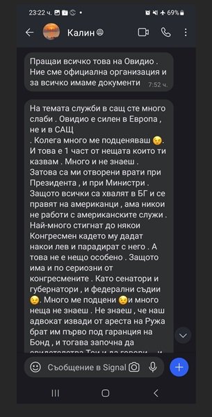 Писмена връзка от началото на 2023 година сред Дилиян Георгиев и “Калин “ (вероятно Калин Едрев), в която се разяснява лицето Овидиу Семенеску, разгласен за търсене посредством Интерпол: