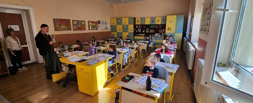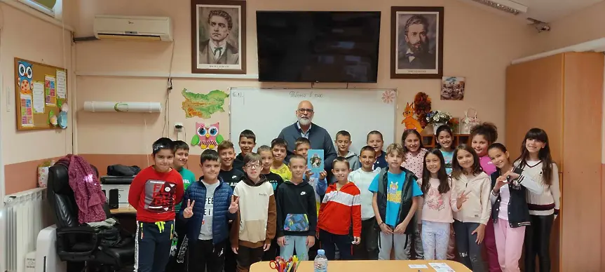 Гостите показаха пред учениците своите книги „ Приказки на дядо Орхи “, „ Караконджул в костюм “ и „ Повелителят на щъркелите “.