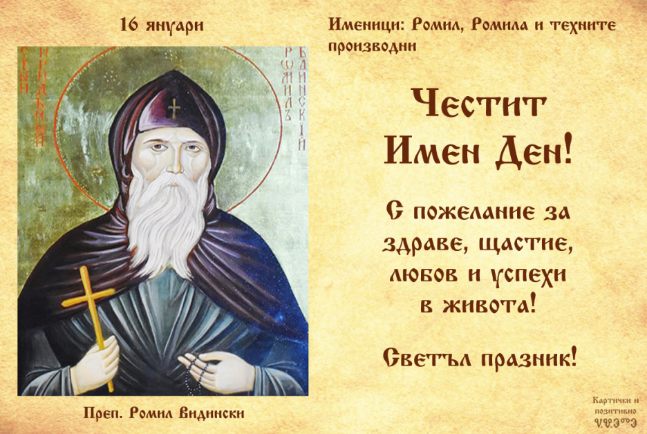 На 16 януари църквата уважава Преп. Ромил Видински и Св. свщмчк Дамаскин Габровски.