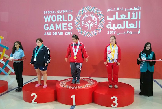 „ Да бъда трета в света – това е същинско достижение “, показа разчувстваната Нина, която се класира четвърта преди два дни в свободен жанр на 50 м. Нина Ал Рифаи е някогашен спортист и първенец на Спешъл Олимпикс Сирия. Сега тя е щастлива, че може да се състезава още веднъж за тима на Спешъл Олимпикс България. Семейството и приятелите на Нина, които през днешния ден живеят в Обединените арабски емирства я подкрепяха мощно от началото на игрите.