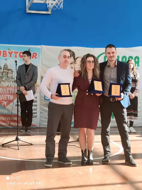 Наградите не свършиха дотук. По традиция на този празник се награждават и отличените от хората, които правят работата си с доста обич и неуморно поддържат своите възпитаници по пътя към триумфа, надлежно: „ Учител на годината “ - госпожа Анна Костова- преподавател по осведомителни технологии, „ Възпитател на годината “ на господин Здравко Куцев и „ Треньор №1 “ за 2025 година - господин Борислав Налбантов.