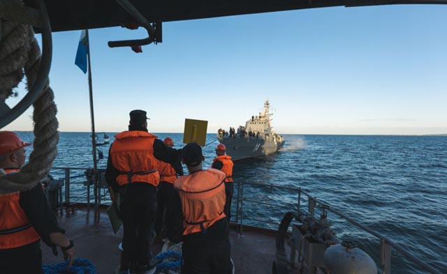Противоминните кораби направиха превеждане на патрулните кораби през авансово обследван и обезопасен за корабоплаването канал в регион с нараснала минна заплаха.