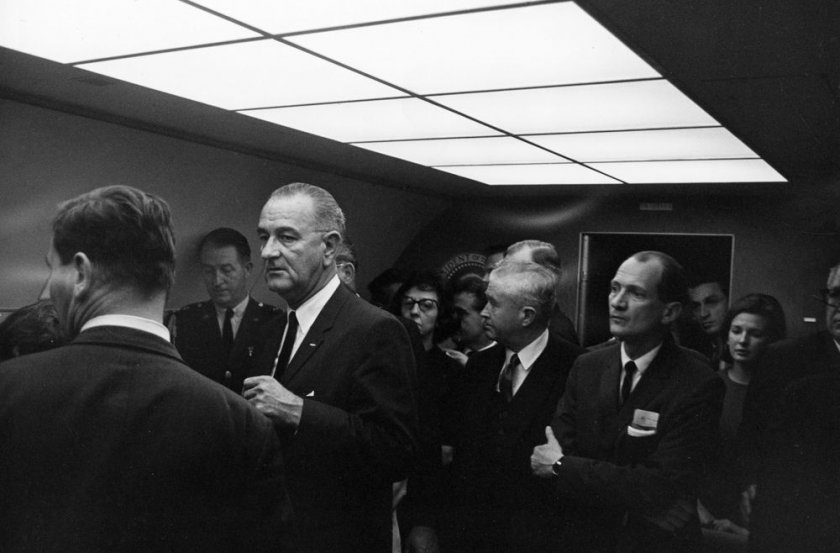 Когато стигнахме до него, той ни сподели, че в самолета могат да влязат единствено двама публицисти и че Линдън Джонсън се готви да постави клетва за встъпване в служба като президент на Съединени американски щати на борда на самолета, който ще отлети незабавно по-късно.