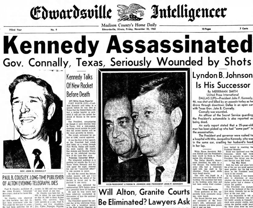 На 22 ноември 1963 година 35-ият президент на Съединени американски щати Джон Кенеди е погубен при атентат по време на обиколка в Далас, щата Тексас. В същия ден за атентата е задържан Лий Харви Осуалд, който след два дни е погубен от Джек Раби. На днешния ден се навършват 60 години от така наречен ликвидиране на ХХ век.