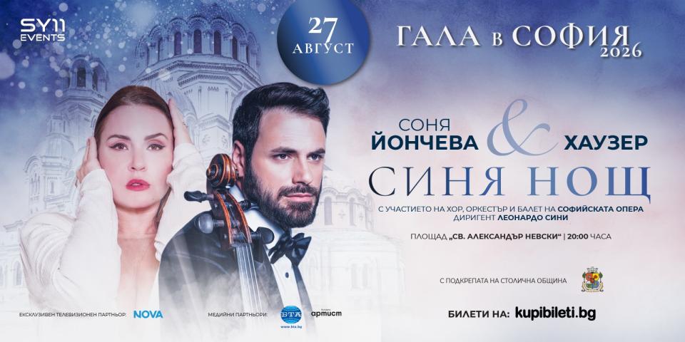 На 25 и 27 август в духовното сърце на българската столица ще се организира станалата към този момент емблематична и обичайната „ Гала в София ” – този път в най-мащабния и най-емоционалния си фестивален формат до момента. На грандиозната сцена на площад „ Св. Александър Невски ” паралелно до българската оперна прима, продуцент и издател Соня Йончева ще застанат тенор №1 на нашето време Йонас Кауфман и международната сензация в класическата и известна музика – виолончелистът Степан Хаузер. И двамата са мегазвезди в своите сфери – появяването им на тази най-престижна родна сцена е в унисон с задачата на Соня Йончева да трансформира България в атрактивна дестинация за изява на най-големите типичен актьори на XXI век, от една страна, а от друга – за българската просвета да се приказва все по-често и с все по-голямо достолепие по света.