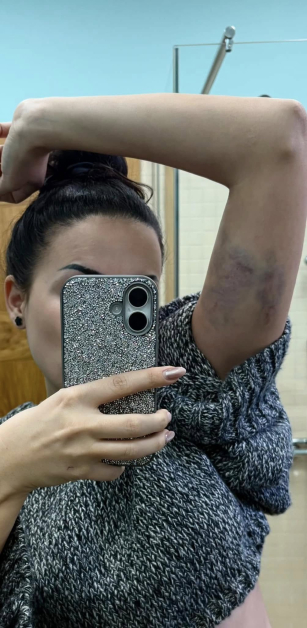 „ Нападнаха и дядо ми, който се опитваше да умиротвори неразбираемия им яд към нас - хвърлиха му очилата. След което ни накараха да отидем в райнното, където ни сложиха белезници и се държаха присмехулно и безчовечен с нас. Притеснена съм от шока, който изживяхме и се опасявам, че това ще повлияе на майка ми и лекуването й! “, добавя Владимирова.